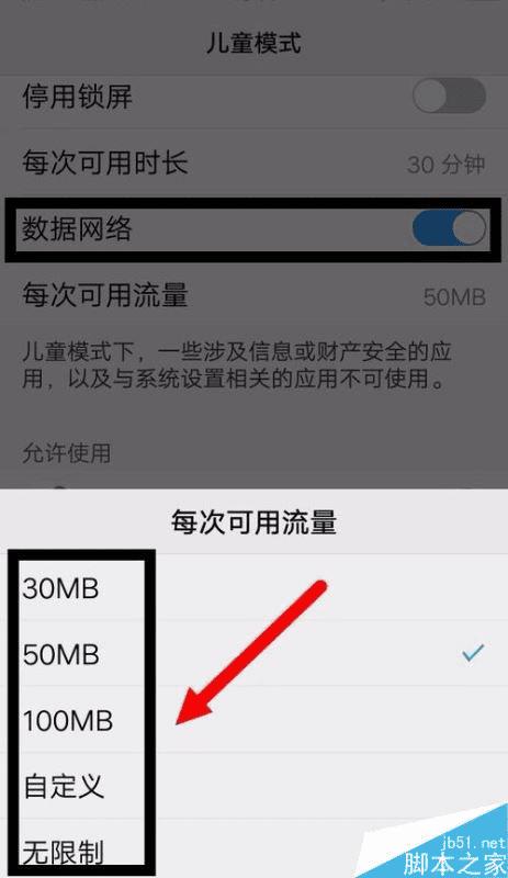 还可以设置限制网络使用,可以给他流量进行限制或者直接不开放流量,这样他玩耍的时候怎么玩也不担心了。
