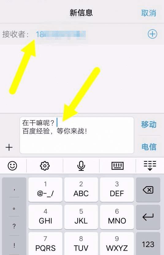 6、我们填写上收件人电话以及自己想要发送的话,点击发送即可。
