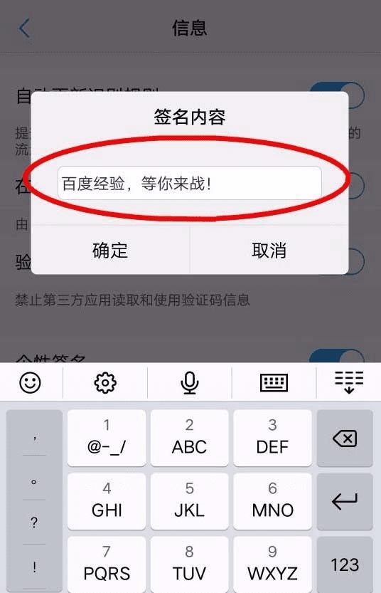 3、签名内容我们可以编辑成自己喜欢的一段话,编辑完成点击确定即可。
