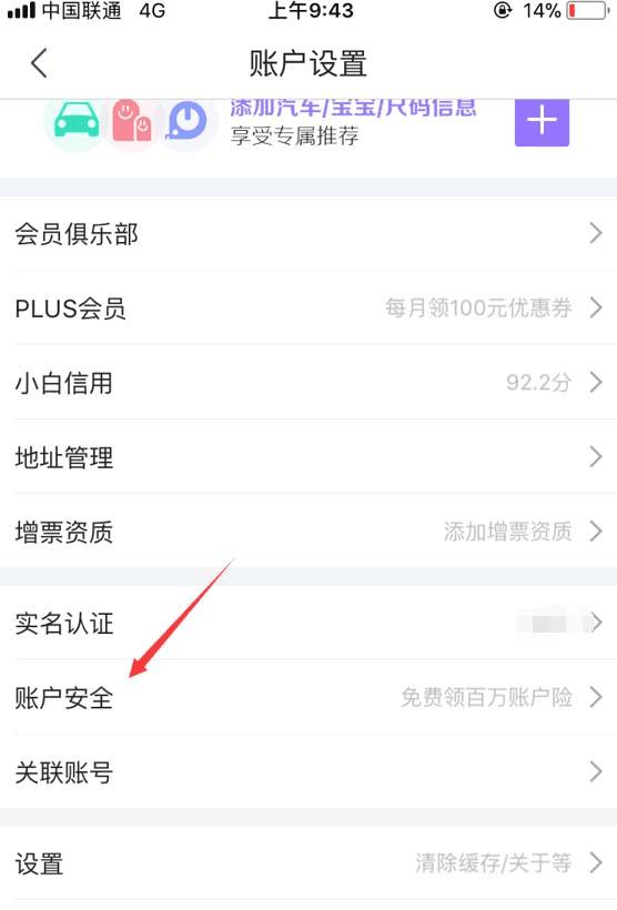 3、打开设置页面后,我们点击选择账户安全,如图所示