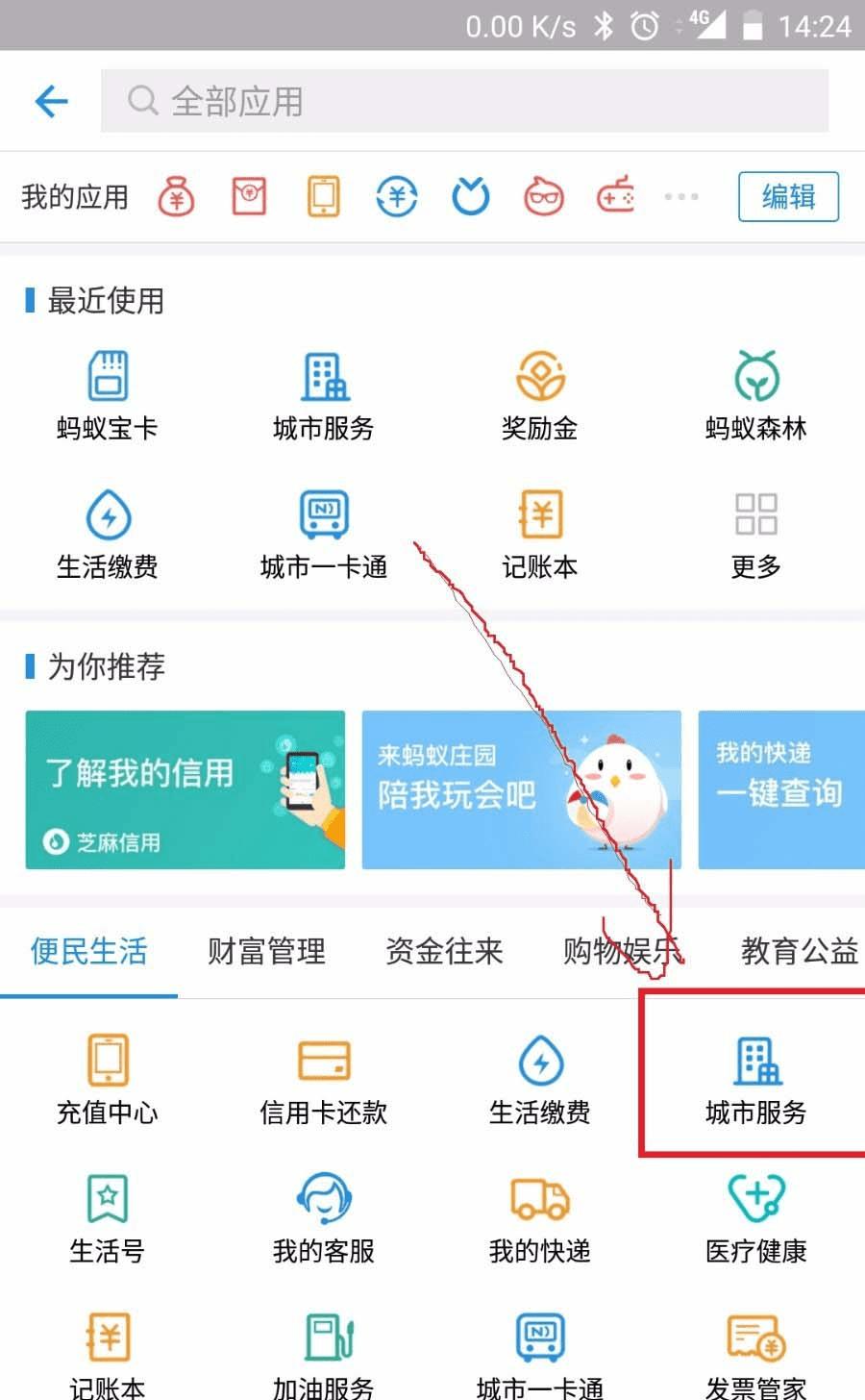 2、在更多种找到城市服务