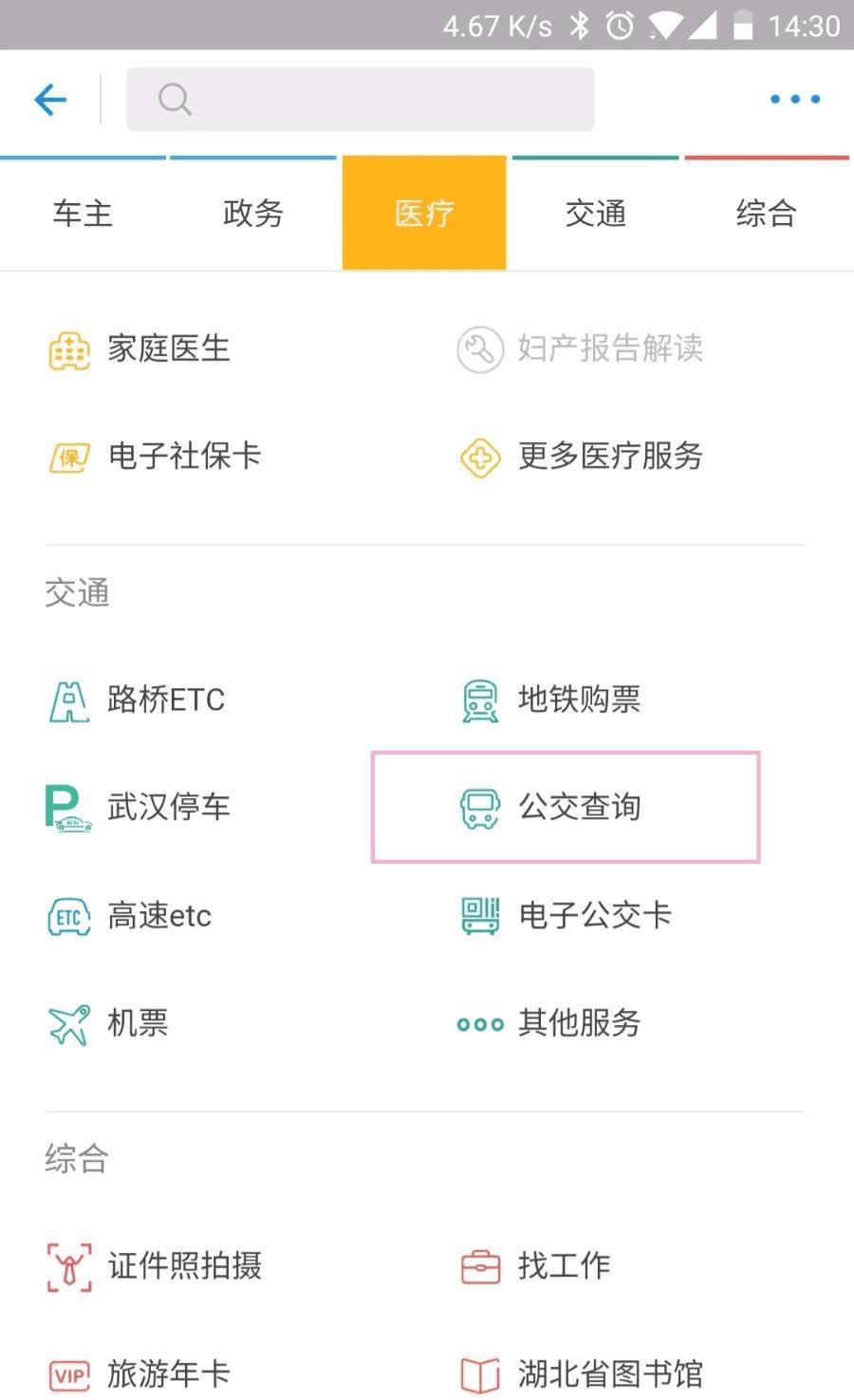 3、然后在城市服务中找到公交查询