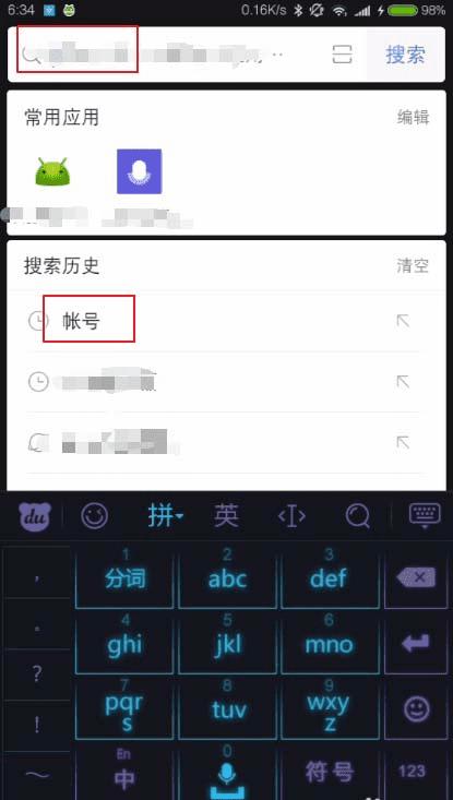 2、在搜索栏输入帐号进行搜索,搜到设置后点击底部的帐号。
