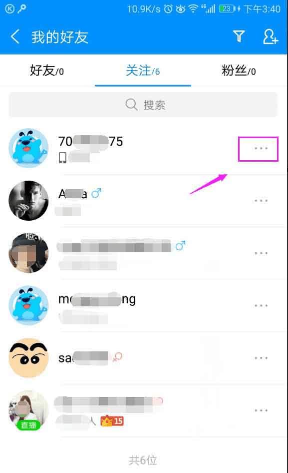 6、这里,我们点击下右侧的三个点,就会弹出取消关注界面,我们点击下,就取消了关注,如图。