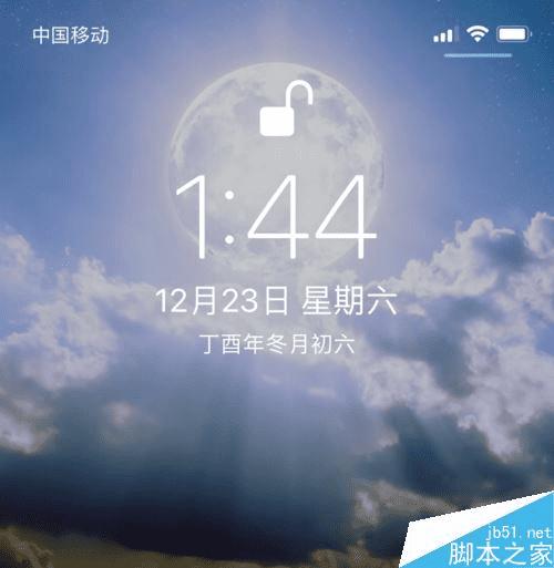 我们锁屏,在开屏,会看见最上面的锁一样的标志被打开了,这样面容ID成功解锁