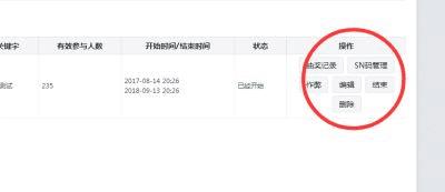第六步,在制作活动的后台,可以看到有微信抽奖活动的记录、SN码管理,SN码管理记录了中|奖的信息。