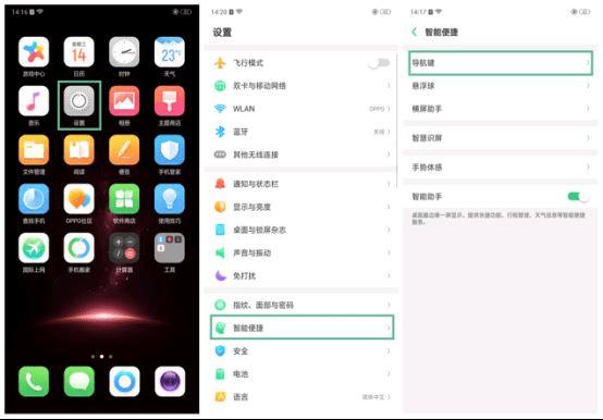 1、通过桌面的【设置】--【智能便捷】--【导航键】进入。