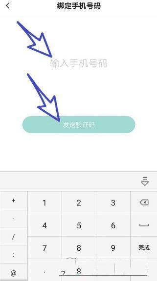 手机号码输入好后,点击下方的“发送验证码”按钮,点击后,出现“输入验证码”几个大字,点击该处,将收到的短信里验证码填入,填入后按确定。