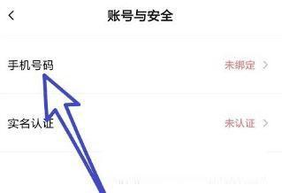 出现设置界面,点击账号与安全。在账号与安全界面中显示手机号码未绑定,点击该处。