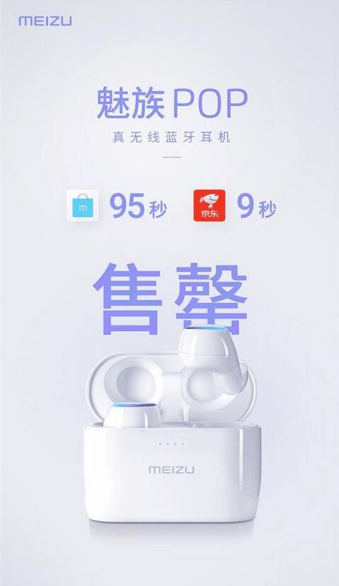 魅族15系列新机正式发售,同步开售的还有魅族POP真无线蓝牙耳机,售价499元。这款新品开售之后迅速售罄,据官方介绍, 魅族POP真无线蓝牙耳机魅族官方95秒售罄,而京东商城仅用了9秒就售罄了。