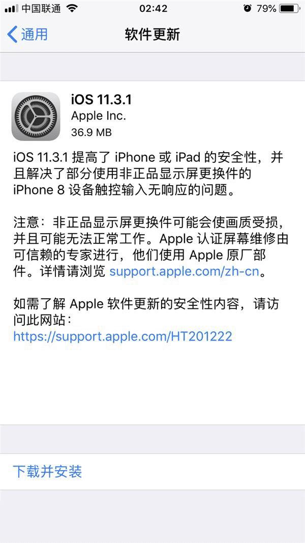 4月25日消息今日凌晨,苹果正式推送了iOS 11.3.1系统,解决了部分使用非正品显示屏更换件的iPhone 8设备触控输入无响应的问题,同时提高了iPhone和iPad的安全性。