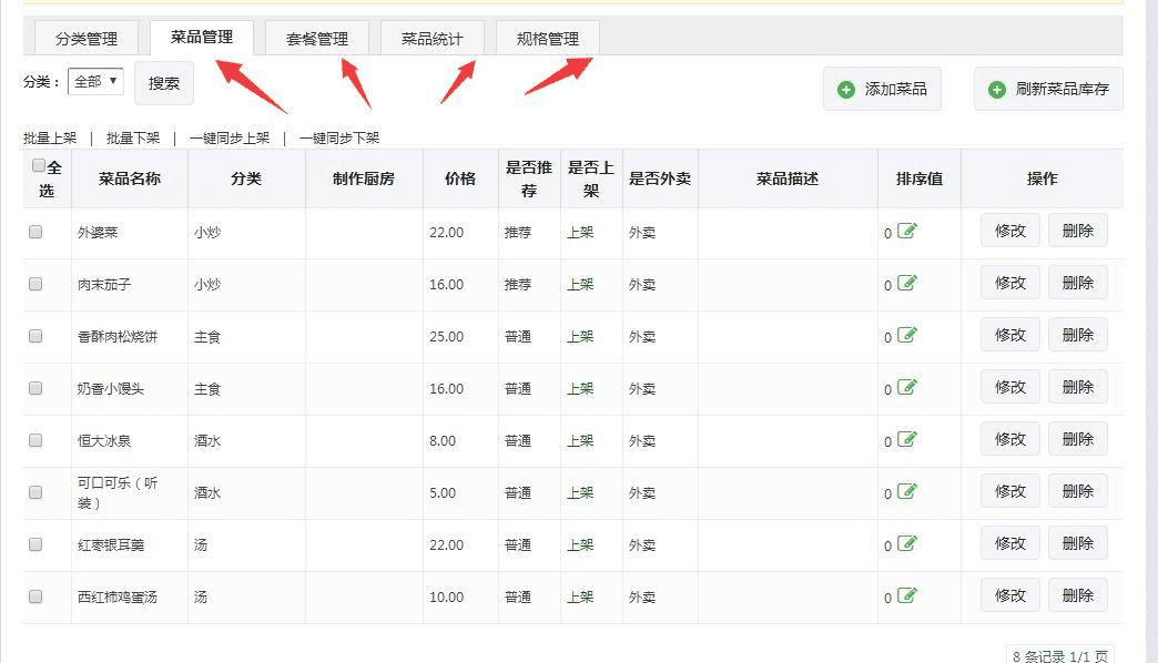 第四步:添加菜品,首先添加好菜品的分类,再添加每个菜的图片和名称,包括价格等等,设置好保存即可