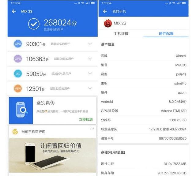 从安兔兔跑分来看,坚果R1跑分27.6万分左右,而小米MIX2S跑分则为26.8万分,跑分相差近1万分,由于优化上的差异,在性能上也存在有所不同。值得一提的是,坚果R1超越黑鲨游戏手机,成为目前全全球跑分最高的手机,小米MIX2S排名第三。
