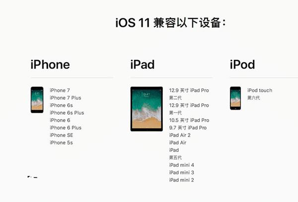 (注:本次iOS11不再兼容支持iPhone5、iPhone5c、iPad4设备)