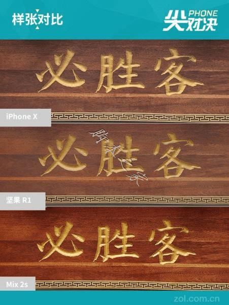 坚果R1、小米MIX2S在拍照上都号称媲美苹果iPhone X,DxOMar相机跑分也都略微高于iPhone X。其中,坚果R1后置2000+1200万双摄像头;小米MIX2S和苹果iPhone X则都是后置1200万+1200万双摄方案,下面我们来看看具体的拍照样张表现吧。