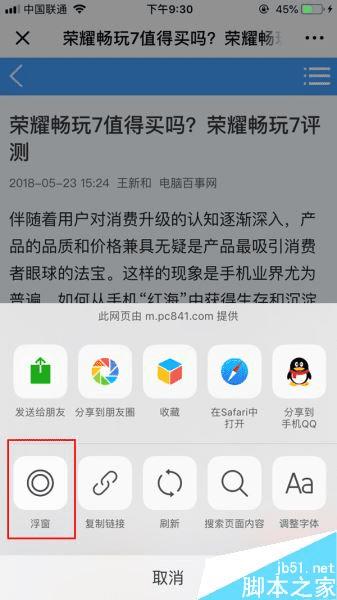 接下来会弹出很多选项,可以分享到不同平台,同时也会看到【浮窗】选项,点击一下,如下图所示。