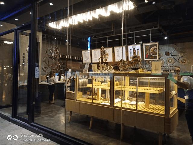 而到了夜间,vivo X21i的拍摄效果更令人惊喜。下图中,隔着玻璃墙街拍面包店,随手一拍便有如此效。在A智慧拍照机的调教下,店内明暗协调,黄色灯光给人一种慵懒的氛围感,架子上的面包显得非常可口。