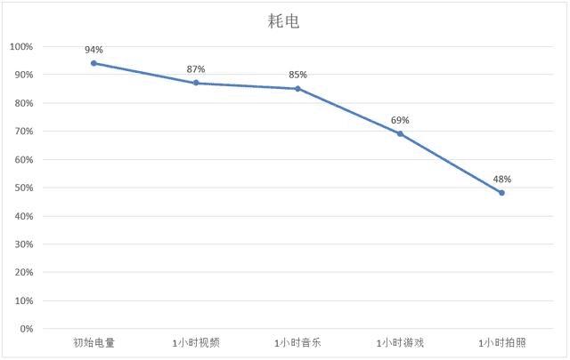 据实测,vivo X21i经过1小时视频、1小时音乐、1小时游戏和1小时拍照之后,电量从94%到48%,耗电量为46%。值得一提的是,1小时拍照中,共拍摄了300张照片,但耗电量仅为21%。这意味着普通用户即便经过旅游景点,疯狂的拍拍拍不停,能持续拍照大约5小时。