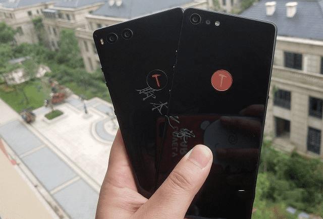 坚果R1和坚果Pro2背面风格则非常相似,均为2.5D弧形玻璃,并且均为平行双摄设计、指纹传感器Logo二合一设计等,背面双摄与指纹传感器位置也完全一样,可以说这两款手机背面风格几乎如出一辙,只不过双摄大小和Logo颜色背景略有不如,如下图所示。