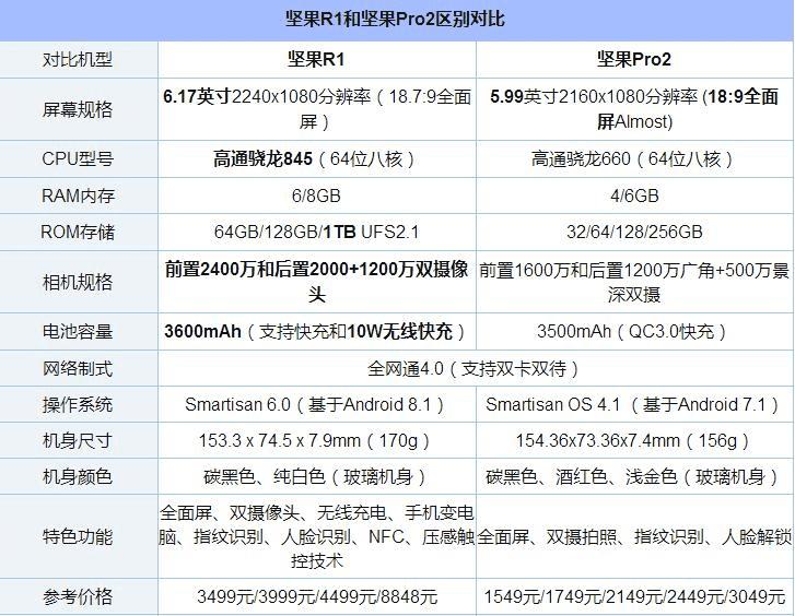 坚果Pro2上市已经有一段时间了,售价已经从原来的1799元起降至1549元起,各版本区别如下: