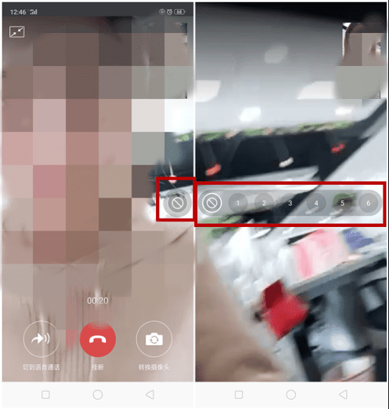 4、 接通视频后点击屏幕右边的小圆圈--就可以进行美颜调节设置了。