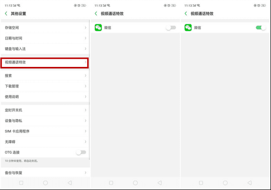 2、 点击【视频通话特效】--【微信】,打开此开关。