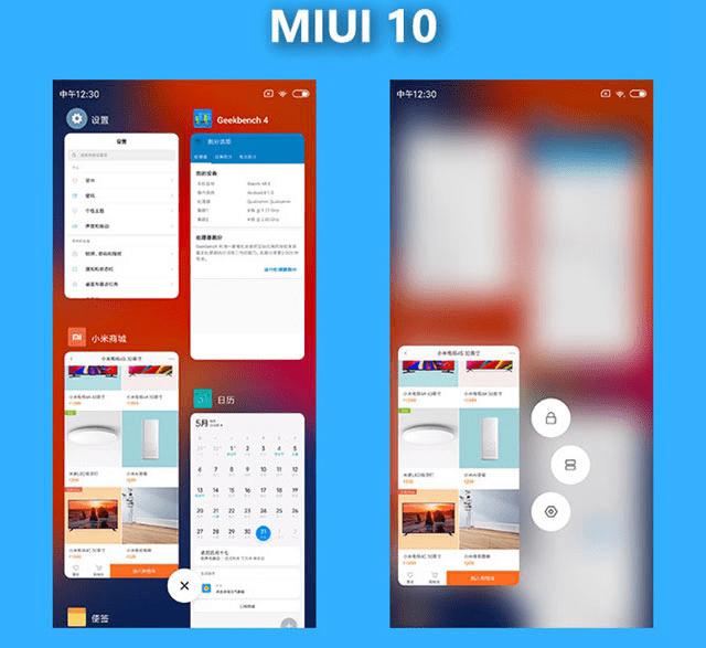 同时为了体现全面屏在显示内容上的优势,MIUI 10的多任务界面也改为纵向瀑布流的形式,单页最多呈现4个近期任务,相比过去3个也显示不全的横向书签式效率更高。新页面下,左右滑动可以删除任务,长按呼出二级菜单选项。