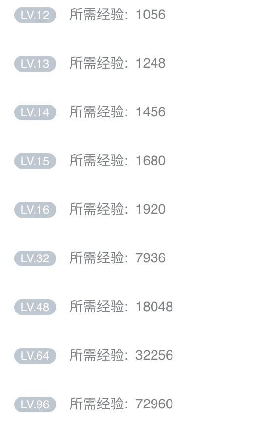7、再来看下,各等级需要的经验数。有强迫症的小伙伴们,好好升级吧。