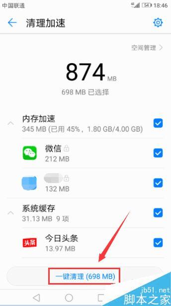 同样的,清理加速也需要一会时间,耐心等待。