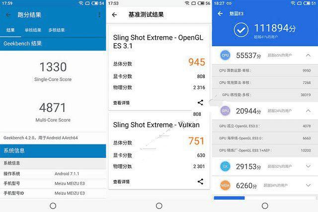 魅蓝E3安兔兔跑分:11.1万分
