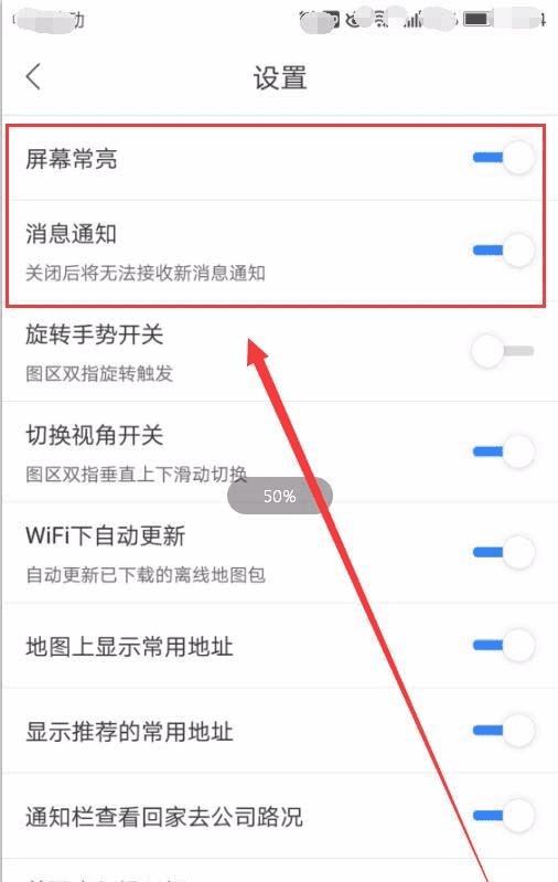 9、设置窗口中,选择屏幕常亮和消息通知两个选项。