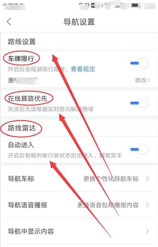 11、导航设置窗口中,选择车牌限行、在线算路优先、路线雷达等选项,如下图所示。