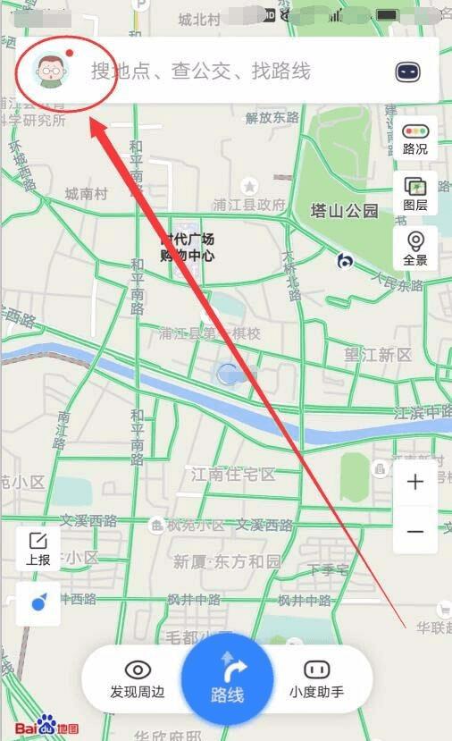 2、百度地图的左上方,找到自己的头像,点击选中。