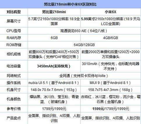 老规矩,首先来看看努比亚Z18mini对比小米6X配置参数与价格,具体如下。