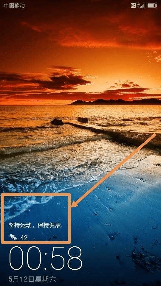 5、我们再次回到我们手机的锁屏界面的时候,我们就会很明显地看到,我们需要的步数显示功能已经出现在这个锁屏壁纸上了,如图所示~