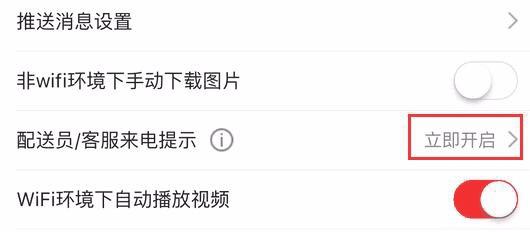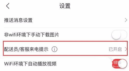 4、我们可以看到页面中的【配送员/客服来电提示】处于关闭状态,我们点击打开它