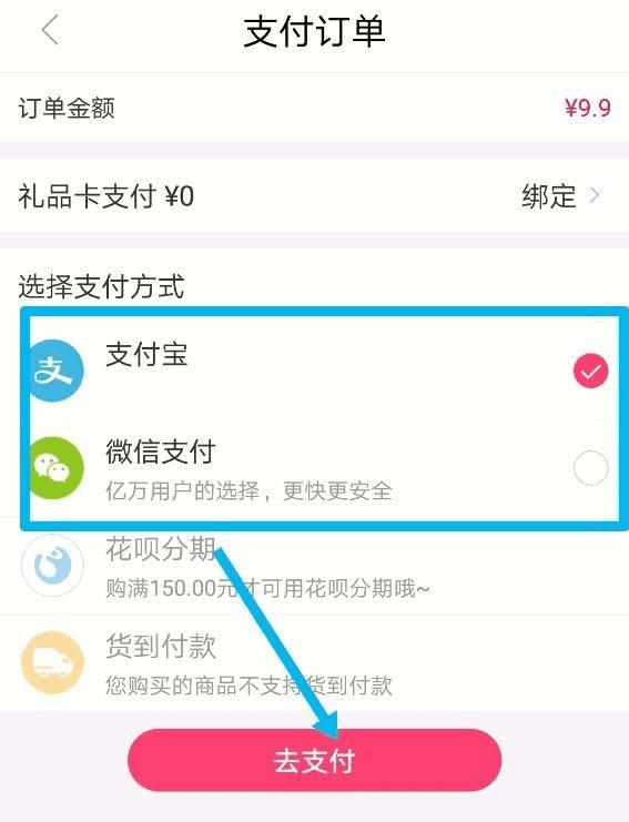 7、然后选择你付款的方式,可以支付宝,微信,选择后就【去支付】,然后团购就拼成了。值得一提的是,这多半是两人团,一般情况下,选择的商品都能团购成功,不必担心团购失败。