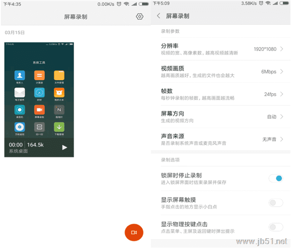 第三步:我们可以回到屏幕录制或者相册里看到我们录出来的视频,也可以在屏幕录制界面的左上角点击设置,调节录屏的帧数清晰度一类的满足我们不同的需求。