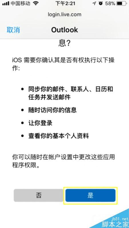 这一步就是邮箱服务提供商的授权信息,点击“是”按钮