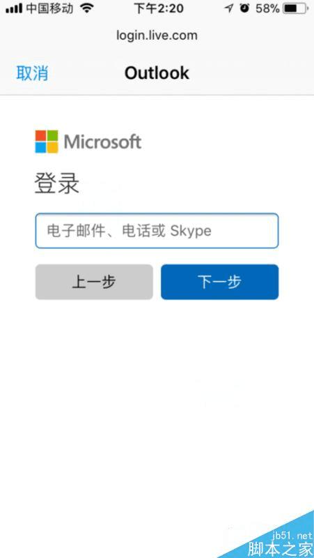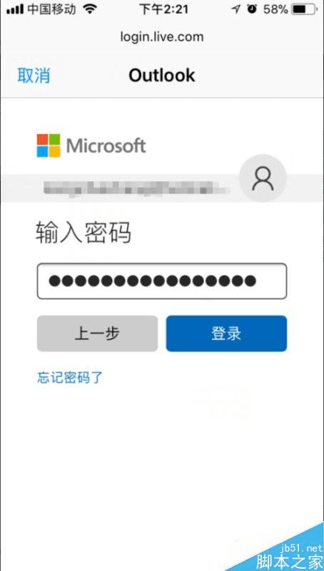 outlook是先输入邮箱账户然后再输入密码,这一步在密码框里输入密码之后,点击“登录”按钮