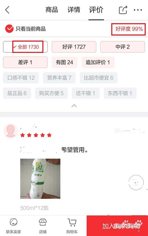 5、大的红色框框中的这些评价都是可以看的,最佳查看的是差评,再来可以看中评。