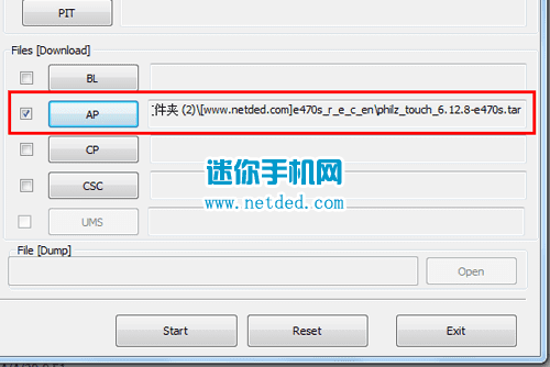 4:打开odin软件之后软件会自动识别你的手机,识别成功后会在ID:COM处显示蓝色的(表示手机连接成功了,如果没有显示蓝色的,说明没有有连接好),然后勾选AP,选择上面下载并解压出来的tar格式的recovery包。