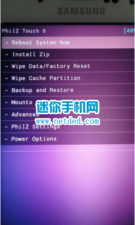 先把手机关机,然后手机在关机的状态下同时按住手机的音量上键 + HOME键 + 开机键(也就是电源键),三键一起按数秒即可进入紫色的 Recovery 界面