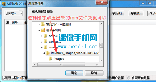 7:然后在弹出界面找到线刷包位置,选择后点击确认,其他不用管。