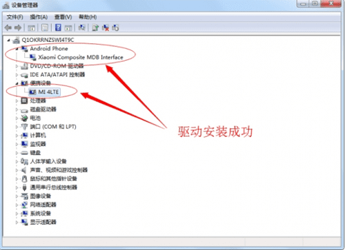 4:接下来用数据线连接到电脑,等待电脑加载好手机驱动,当电脑的设备管理器中显示有安卓设备则驱动正常