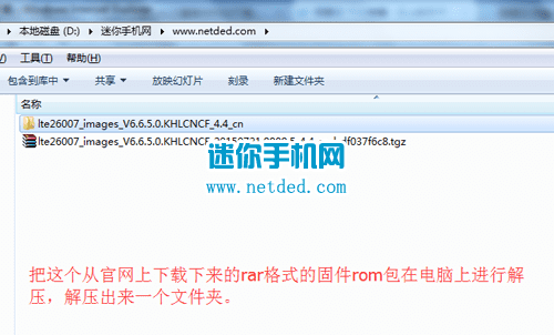 1:把上面下载下来的刷机包在电脑上进行解压,如下图,然后解压出来有个文件夹,这个很重要,一会要用到