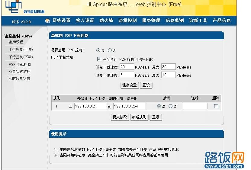 2、通过P2P软件限速,P2P又称P2P终结者(P2POver) ,它是一个可以控制整个局域网网络的管理软件,在局域网中的任何一台安装了它之后,就可以随意的限制局域网中其他计算机的网速、限制其他计算机进行BT、迅雷下载等等,更甚至可以断开某台电脑的网络,使其不能上网。具体可参考:P2P限速软件破解版下载[限制别人网速、BT、迅雷等]