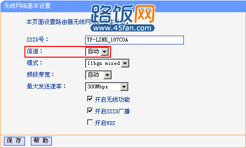 可尝试如下操作:打开无线路由器的管理界面,点击无线设置——基本设置,将设备无线信道指定为1~13其中之一,保存生效。