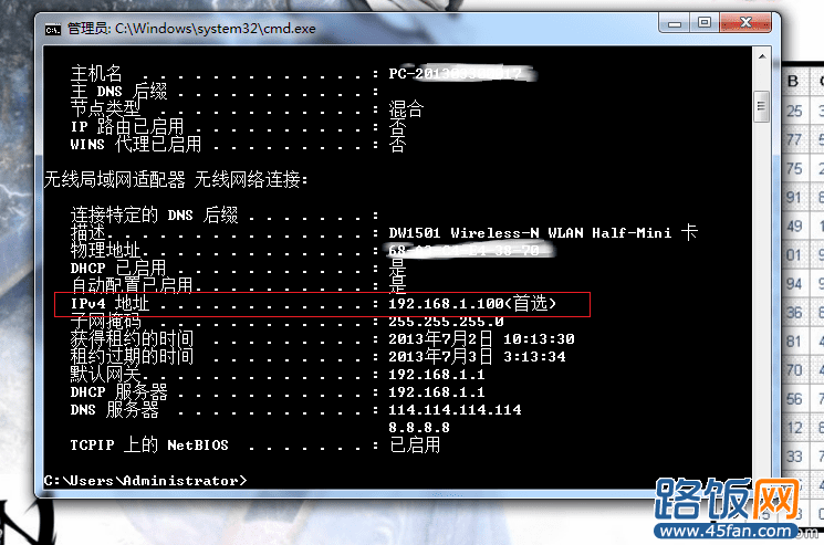 输入 IPconfig/all(注:www.45fan.com那个不是啊,别把那个也打上!)