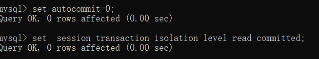 开始一个事务:set autocommit = 0; 并且设置当前事务等级:set session transaction isolation read committed;